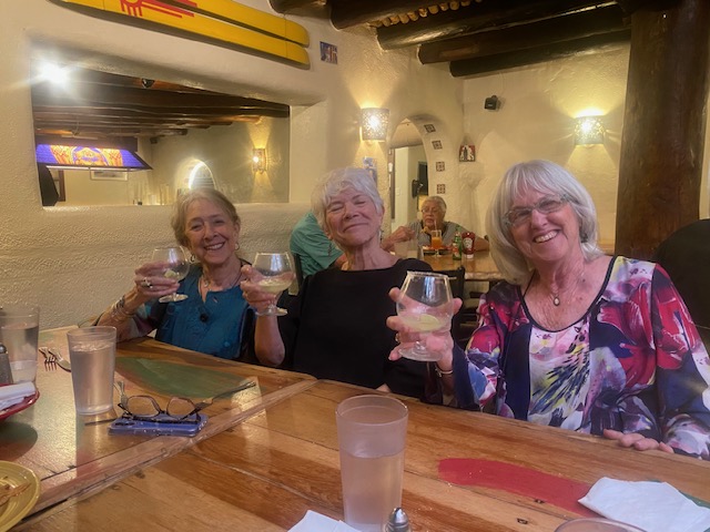Soon June 14th arrived. A significant date in the United States this year! I was happy that we, my two guest poets, Liz and a Taos poet Jami Donley, were reading on No Kings Day! The energetic collaboration, commitment and joie de vivre all over New Mexico – and the country -for the peaceful demonstrations was incredibly heartening. It brought to mind De Tocqueville’s statement in his Democracy in America, that what he admired most in Americans was the “creative capacity for innovation while holding moral ground.” It was satisfying to be part of that spirit through poetry.